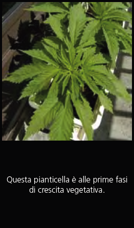 La fase di crescita di una piantina dura dalle due alle tre settimane a partire dalla germinazione dei semi. Una volta creato un forte sistema radicale e aumentata la rapidità di crescita delle foglie, le pianticelle entrano nella fase di crescita vegetativa. Quando la produzione di clorofilla aumenta, una pianta in vegetativa produce più fogliame verde e abbondante possibile, finché luce, anidride carbonica, sostanze nutritive e acqua sono illimitate. Mantenuta nel modo appropriata, la marijuana può crescere da poco più di 1 cm a 5 cm al giorno. Una pianta che stenta in questa fase potrebbe richiedere settimane per tornare a una crescita normale. Un sistema radicale forte e senza limitazioni è essenziale per fornire l’acqua e le sostanze nutritive necessarie. Una crescita vegetativa non limitata è la chiave per un raccolto vigoroso. Durante la crescita vegetativa, l’assunzione di acqua e nutrienti da parte della pianta cambia. La traspirazione è sempre più veloce e la pianta richiede una maggior quantità di acqua. Sono necessari alti livelli di azoto; ad un ritmo ancora più veloce vengono utilizzati potassio, fosforo, calcio, magnesio, zolfo e altri residui. Più grande è la pianta e più forte il sistema radicale, tanto più velocemente si prosciuga il terreno. La chiave di una forte crescita vegetativa e un raccolto vigoroso consiste nell’assicurare l’ambiente perfetto a radici e piante.
