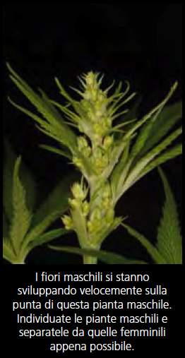 Vi consiglio di aspettare sempre la comparsa dei pre-fiori prima di indurre la fioritura. Se si induce la fioritura con 12 ore di buio ininterrotto e 12 ore di luce prima che compaiano i pre-fiori, si stressa la pianta. Questo stress potrebbe provocare una crescita particolare e le piante potrebbero diventare ermafroditi. Inoltre, inducendo la fioritura prima della comparsa dei pre-fiori non si accelera la fioritura. In effetti, la comparsa dei pre-fiori non influisce sui tempi di fioritura, che sarà comunque lo stesso in entrambi i casi. In genere, sulle piante cresciute da seme utilizzando un fotoperiodo di 24/0, i pre-fiori sono evidenti dopo aver fornito alle piante un fotoperiodo giorno/notte di 18/6 ore. Quando si è in grado di distinguere i pre-fiori maschili da quelli femminili, è possibile indurre le piante alla fioritura con un fotoperiodo giorno/notte di 12/12 ore.
