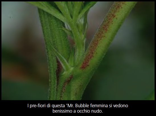 I pre-fiori sono visibili a occhio nudo, ma si possono vedere meglio se li si ingrandisce dalle 10 alle 30 volte. Dopo otto settimane, potete determinare accuratamente il sesso della pianta. Con questo metodo, potete distinguere il sesso prima di indurre la pianta alla fioritura.